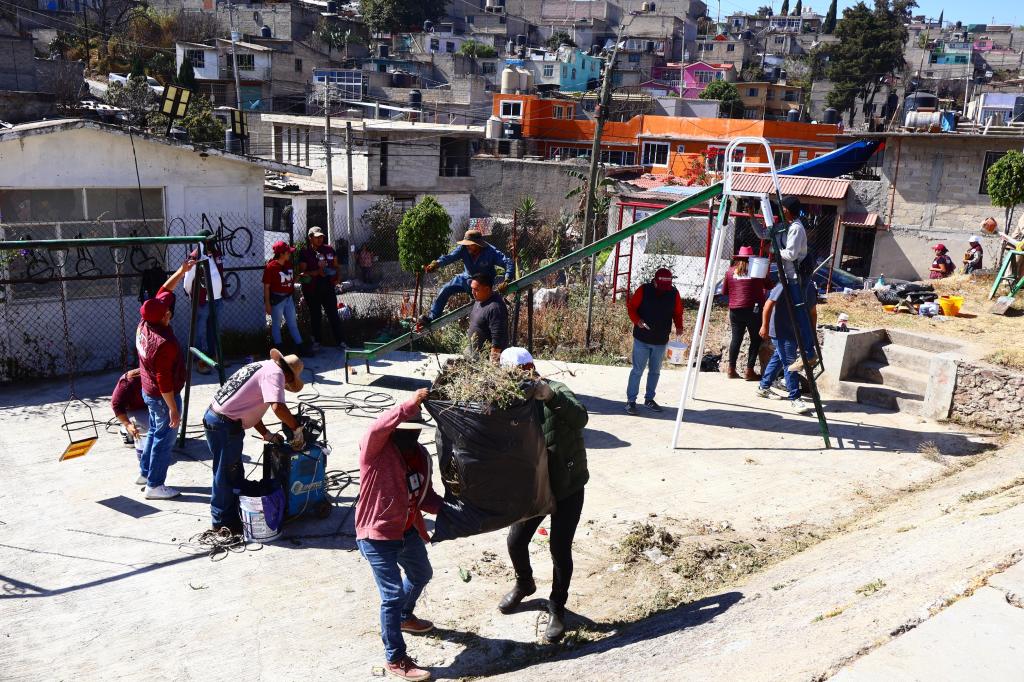 El Gobierno local que encabeza la Alcaldesa, Yoselin Mendoza, informó que en la demarcación, dichas acciones se llevaron a cabo en el parque de la colonia Jorge Jiménez Cantú, donde estudiantes, vecinas y vecinos de esa comunidad, junto con servidores públicos municipales, emprendieron una faena de limpieza y rehabilitación de ese lugar, en el que también se pintaron juegos infantiles, guarniciones, las porterías de la cancha de usos múltiples y se activaron luminarias por parte del área de Servicios Públicos.