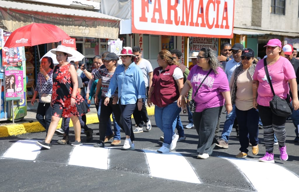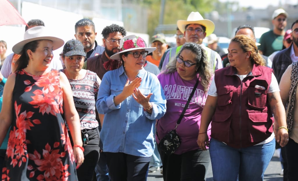 La presidenta municipal caminó con colonos por la avenida, que también beneficia a habitantes de las colonias Alfredo del Mazo y Ampliación Joyas, y recordó que el gobierno de Ecatepec adquirió maquinaria propia para repavimentar vialidades.