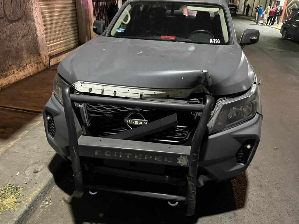 Al llegar al pueblo de Santa Clara Coatitla, el sujeto chocó una patrulla de Tránsito municipal del lado izquierdo, pero continuó la fuga y persecución, hasta que impactó un segundo vehículo policial que acudió al refuerzo.