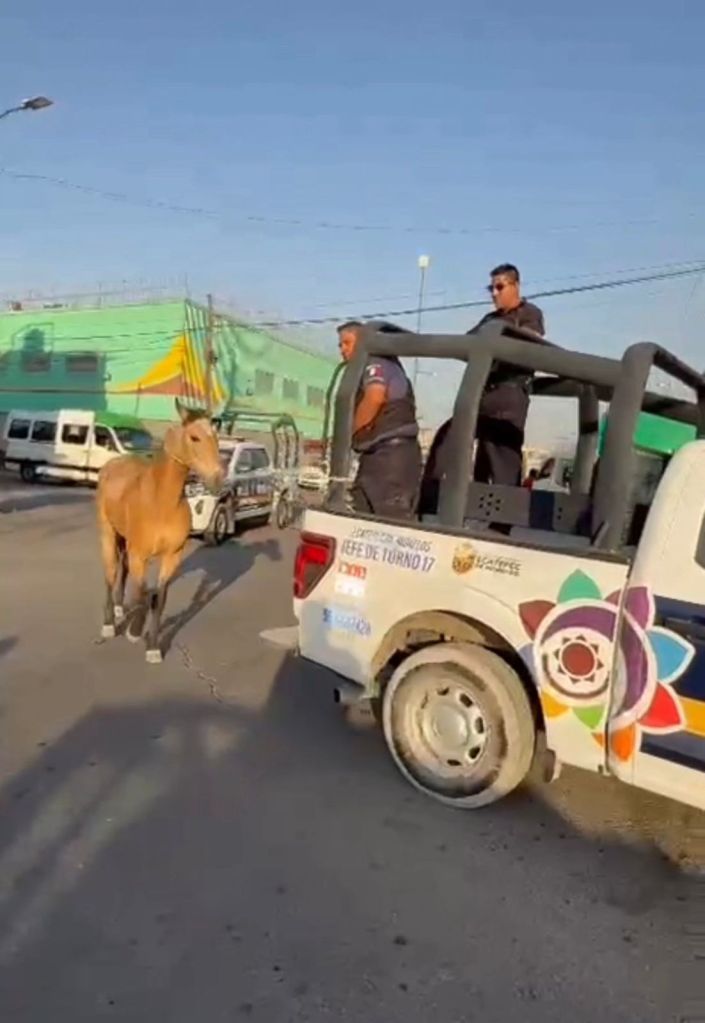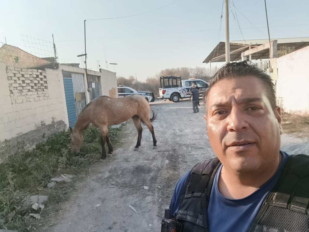De acuerdo con Andrés Reyes Delgado, jefe del segundo turno del sector 17, cuando realizaban recorridos de proximidad social, vecinos reportaron que había un caballo que andaba suelto sobre avenida Insurgentes en el citado fraccionamiento y al que ubicaron en calle Ombues.