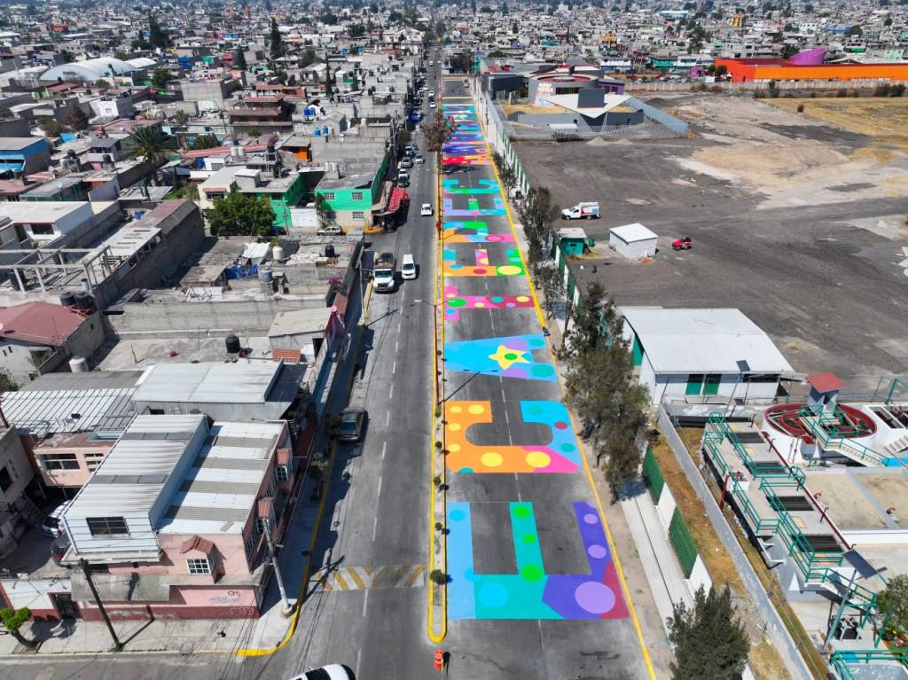 La presidenta municipal cortó el listón inaugural y recorrió la vialidad junto con colonos de Valle de Aragón, Jardines del Tepeyac, Valle de Anáhuac, Zapata y Valle de Guadalupe, entre otras comunidades, la cual está iluminada y tiene un gran mural en el asfalto con la leyenda “Ecatepec Amor y Paz”.