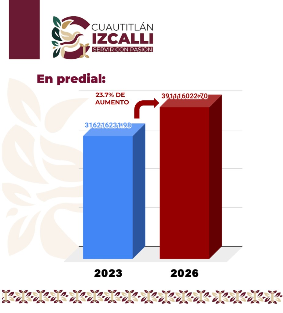 Este resultado positivo, se suma al obtenido en el primer año de la administración, apuntó Serrano, mientras que en el comparativo entre 2025 y 2026, también se registró un incremento superior a los 27 millones de pesos, lo cual equivale a un 7.62% más ingresos.