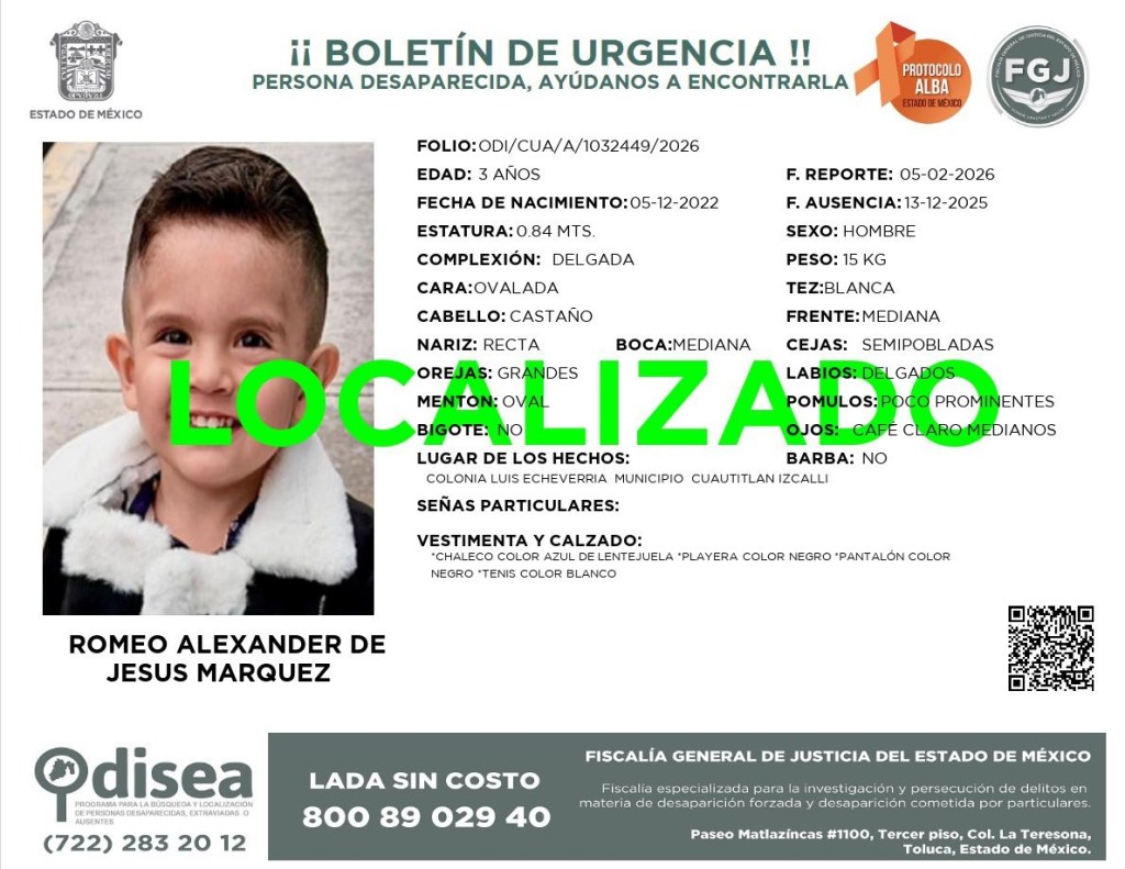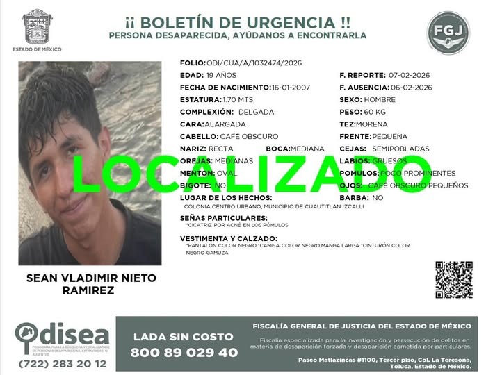 El Gobierno Municipal de Cuautitlán Izcalli reafirma su compromiso de trabajar de manera coordinada con instancias estatales y federales para fortalecer la búsqueda y localización de personas, priorizando en todo momento el bienestar y la seguridad de las familias.