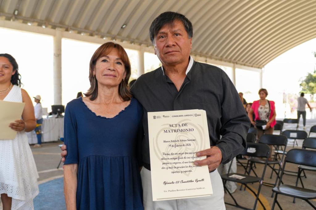 Las parejas que formalizaron su matrimonio recibieron el acta correspondiente en ceremonia solemne; paralelamente, fueron expedidas copias gratuitas de actas de nacimiento, matrimonio y defunción, por cuenta de la Oficialía del Registro Civil No. 3.