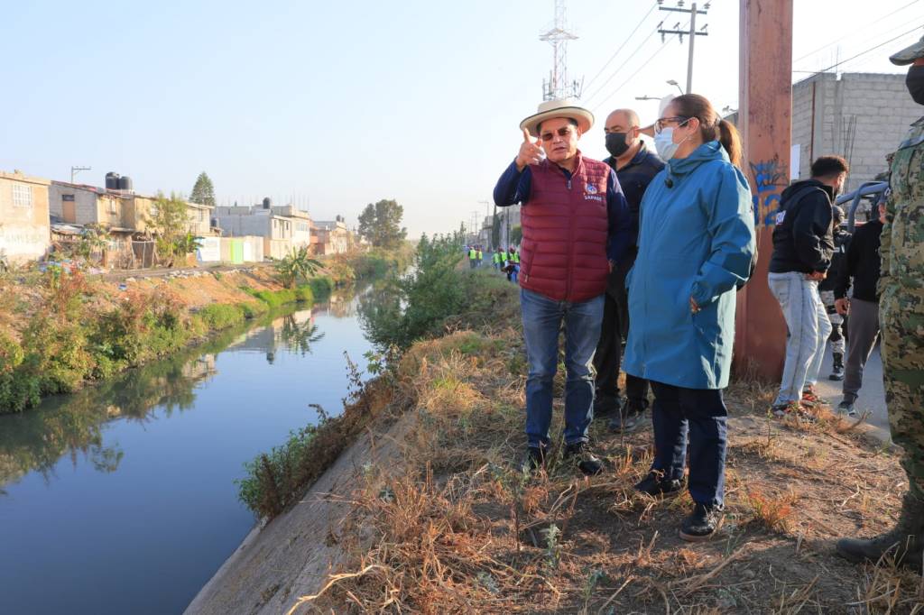 Ecatepec, Méx.- Servidores públicos de Ecatepec, entre ellos policías municipales, con apoyo de elementos de Marina y Sedena, realizaron una jornada de limpieza en el canal Cartagena, del que retiraron decenas de toneladas de basura para prevenir inundaciones.