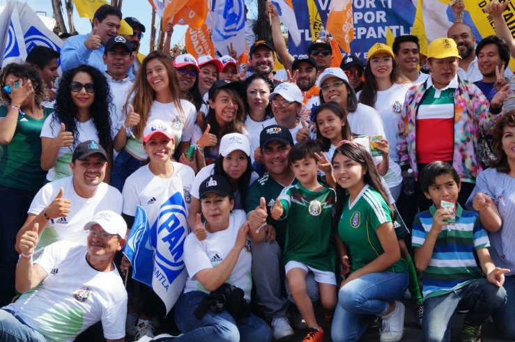 Tlalnepantla, Méx.- Beto Díaz Trujillo, candidato a la presidencia municipal de Tlalnepantla de la coalición Por el Estado de México al Frente, disfrutó de la victoria de la Selección Mexicana, junto con vecinos y padres de familia de la colonia Santa María Tlayacampa.