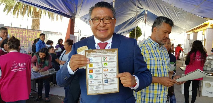 Horacio Duarte Olivares ejerciendo su voto en la 4679 de Santiago Cuautlalpan, Texcoco
