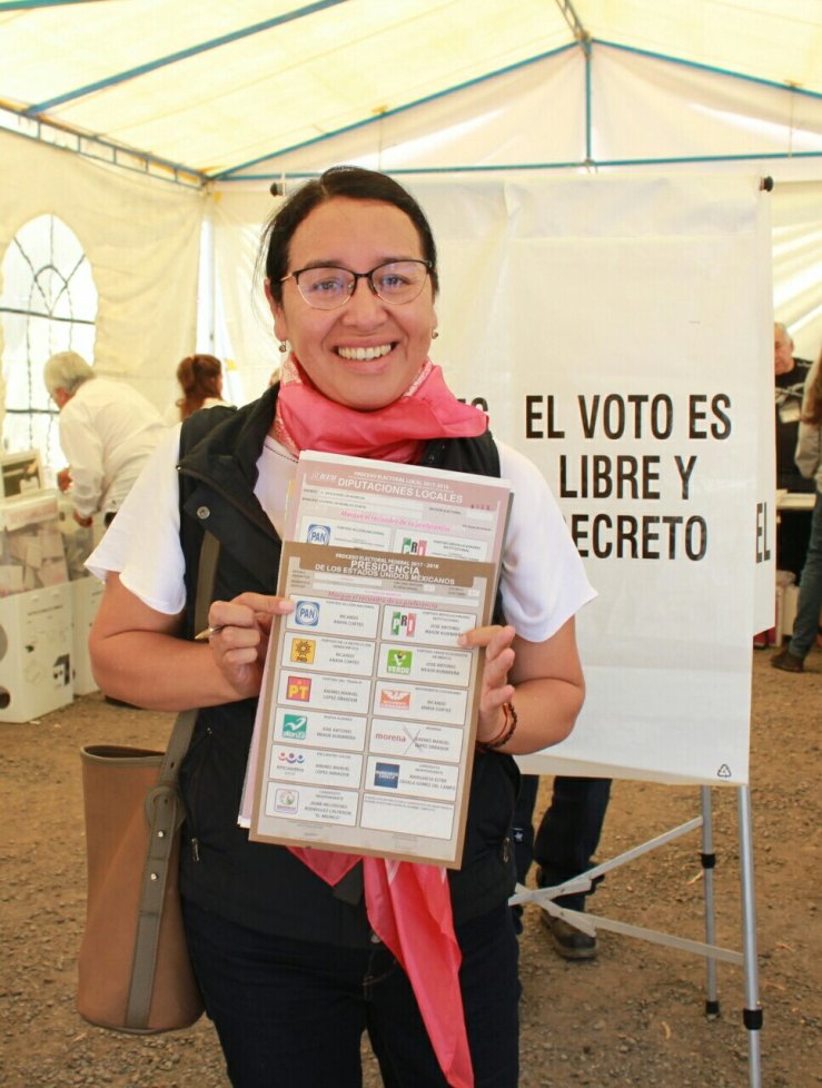 La candidata de MORENA por el distrito 8 local, Azucena Cisneros al emitir su voto en la Unidad Habitacional de la “monera”, de la casilla 7022 destacó amplia participación de la ciudadanía.