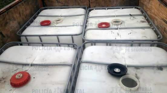 Los oficiales descendieron de sus unidades para efectuar una inspección de rutina y aseguraron cuatro contenedores con capacidad de mil litros cada uno, de los cuales tres se encontraban vacíos y uno al 50 por ciento de su capacidad, dando un aproximado de 500 litros de un líquido, color rojizo con las características propias de hidrocarburo.