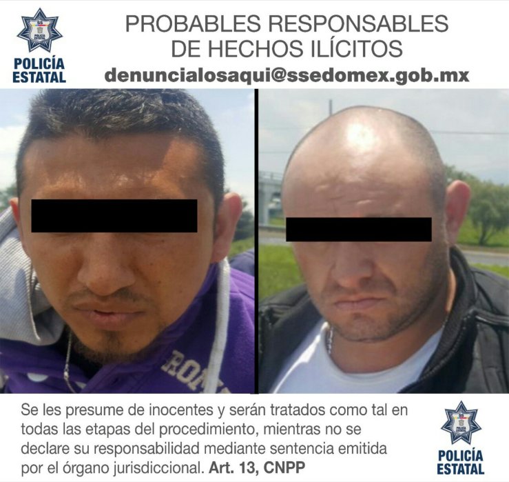 Arturo “N”, de 36 años, y Rafael “N”, de 31 años de edad, luego de darles a conocer el motivo de su captura y los derechos que les amparan, fueron trasladados y puestos a disposición del Ministerio Público, con sede en el municipio de Ixtlahuaca.