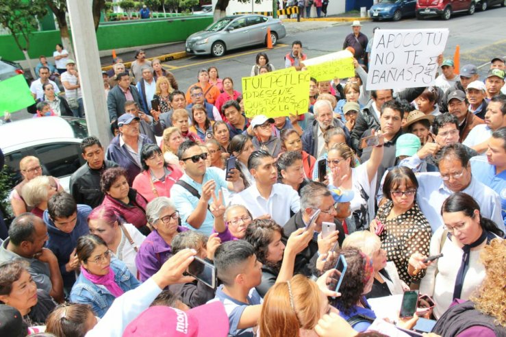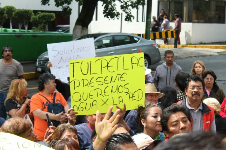 aucalpan, Méx,- Unos 300 representantes de 200 colonias de Ecatepec y diputados electos de Morena protestaron en las oficinas de la Comisión de Aguas del Estado de México (CAEM) para demandar la regularización del suministro de agua, en tanto autoridades estatales reconocen un déficit de 2 mil litros de agua por segundo, esta situación afecta al 50 por ciento de la población que habitan en 350 comunidades de esta demarcación.