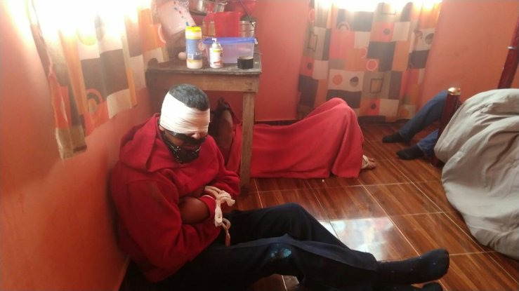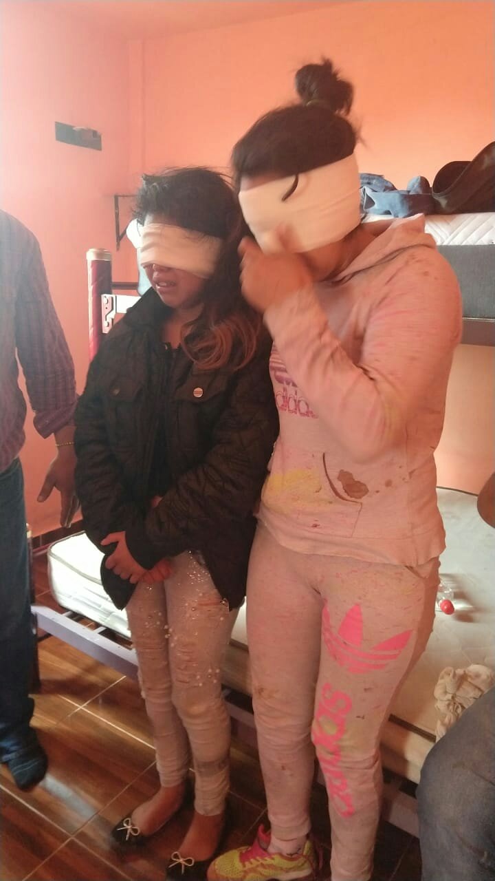 En ese momento se escucharon gritos de auxilio que provenían de una de las habitaciones; luego de una revisión completa al inmueble fueron encontradas maniatadas y vendadas de los ojos seis personas, y fueron detenidos otros dos sujetos.