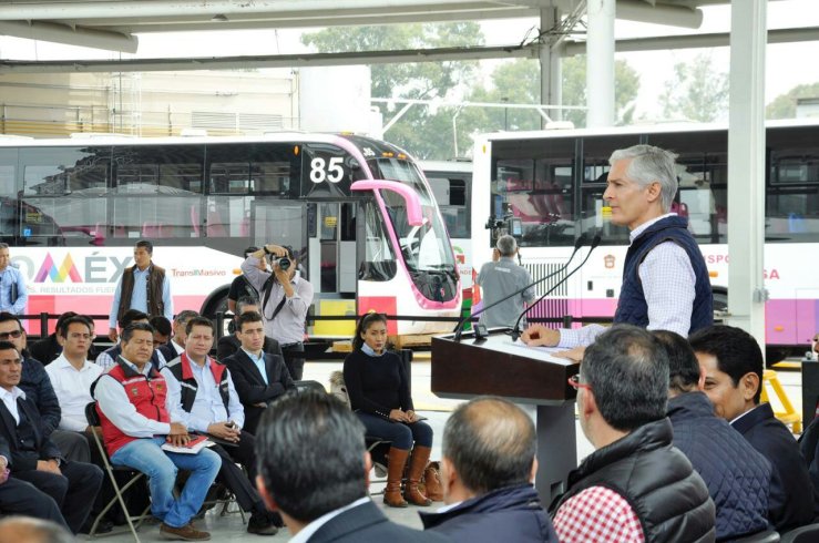 En las instalaciones de Transmasivo, concesionaria del Mexibús, el Gobernador Alfredo Del Mazo manifestó que estas unidades brindan seguridad y comodidad a los usuarios, ya que están equipados con cámaras de vigilancia, botones de pánico y están conectados al C5 de la policía estatal.