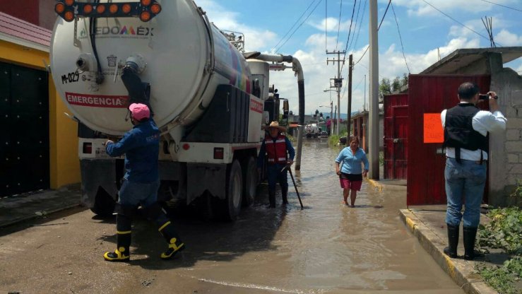 Con una fuerza de trabajo de 30 personas, dividida en cuadrillas, y el apoyo de seis equipos de presión succión, 20 bombas de achique, dos camiones tipo volteo y un equipo especializado, la CAEM intervino la infraestructura del drenaje, para acelerar el desalojo del agua de casas y calles.