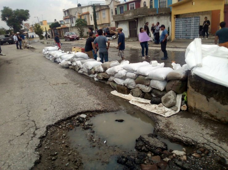 Como una medida de protección ante la previsión de lluvias puntuales en la zona de escurrimiento, se colocaron costales para encauzar el agua pluvial hacia los pozos de visita.