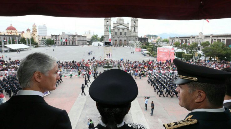 Encabeza Alfredo Del Mazo desde palacio de gobierno desfile cívico militar.