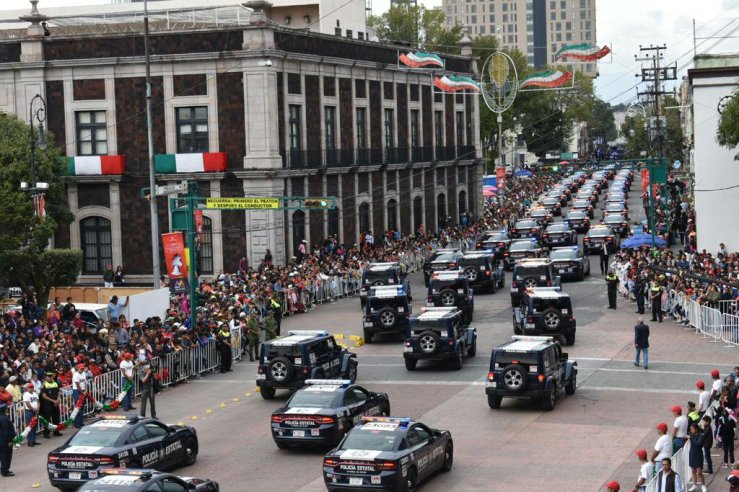 El desfile del 16 de Septiembre, estuvo compuesto por 20 banderas, cinco mil 290 personas, cuatro bandas juveniles de marcha, 14 agrupamientos, nueve carros alegóricos, ocho autos clásicos, 123 vehículos, tres helicópteros, cinco aviones Boeing, 39 canes y 30 caballos.