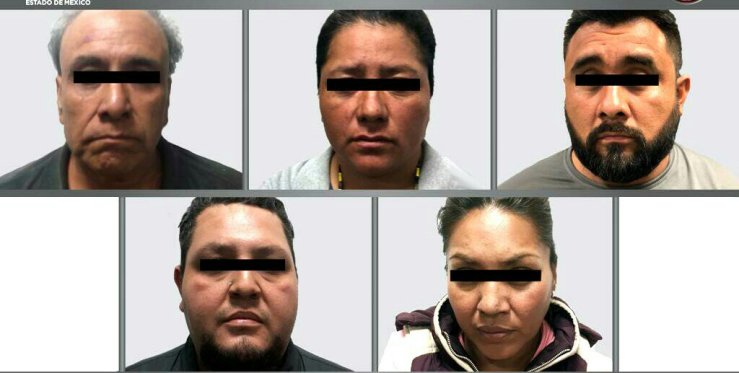 Por ello fueron detenidos Juan José “N”, de 56 años de edad; Mario Miguel “N”, de 35 años; Luis Alberto “N”, de 37 años; Perla Wendolin “N”, de 36 años, y María Gabriela “N”, de 42 años.
