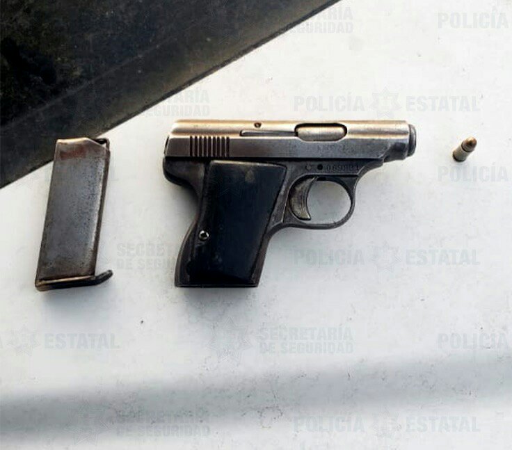 Acorde al protocolo, después de su captura se le realizó una revisión preventiva y se le encontró en posesión de un teléfono celular y dinero en efectivo, producto del atraco; le aseguraron, además, un arma de fuego calibre 0.25 milímetros, marca “Sterling”, con cargador y un cartucho útil.