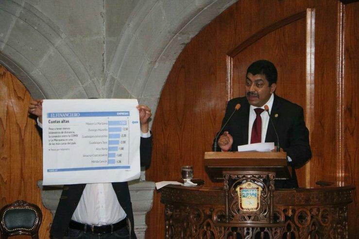 “Señor Secretario, en días pasados, el Estado de México fue noticia por contar con la autopista más cara de México “La Marquesa-CDMX”, con tan sólo 21 kilómetros cuesta 82 pesos, es decir, 4 pesos por kilómetro, pago que afecta a la economía mexiquense”.
