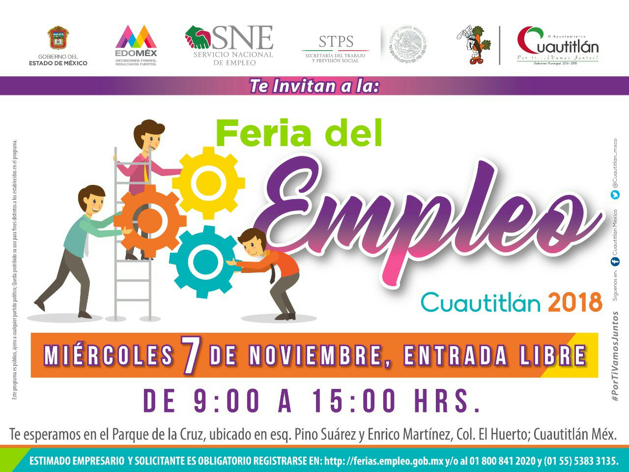 El Gobierno Municipal de Cuautitlán México, que preside la Alcaldesa, Guadalupe Fernández Sánchez invita a los jóvenes y adultos el próximo miércoles a la Feria del Empleo.