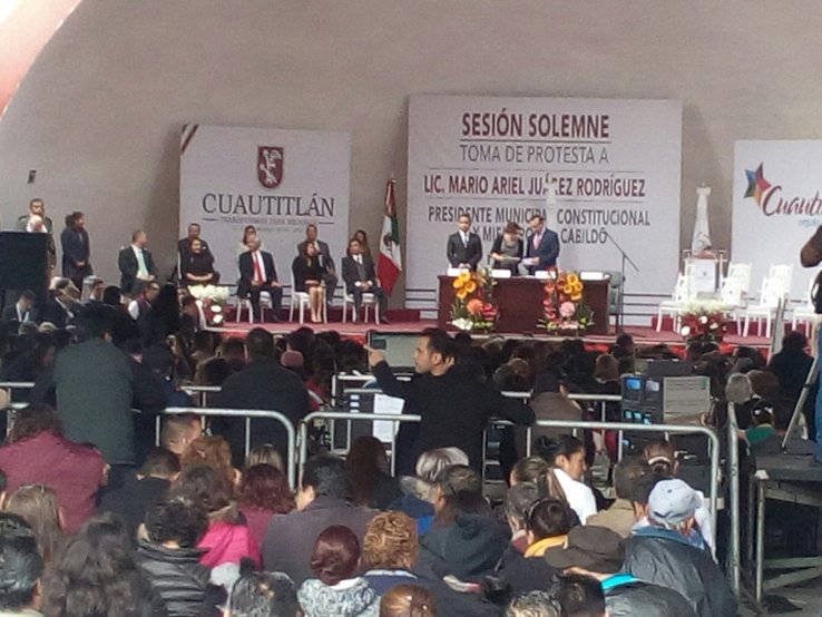 A unos minutos de que inicie la toma de Protesta del Morenista Mario Ariel Juárez Rodríguez como Presidente Municipal Constitucional de Cuautitlán México