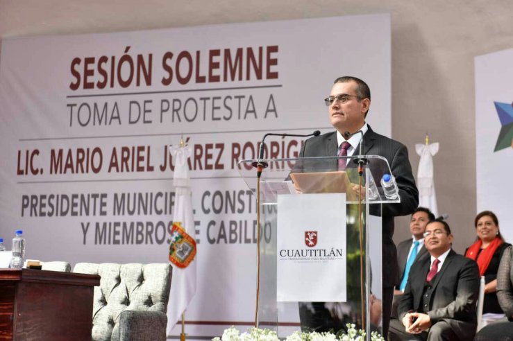 En su toma de protesta como alcalde de Cuautitlán para el periodo 2019-2021, Mario Ariel Juárez Rodríguez, presentó sus programas de gobierno