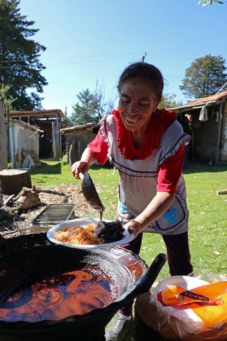 Aunque los platillos se cocinaron con leña, la molienda de los ingredientes en el metate no pudo realizarse por la avanzada edad de los participantes, pero al acudir acompañados por sus nietos, hijas o nueras, la convivencia familiar despertó la inquietud de las nuevas generaciones por el lenguaje mazahua, las historias y leyendas y sobre todo, las recetas de la cocina tradicional.