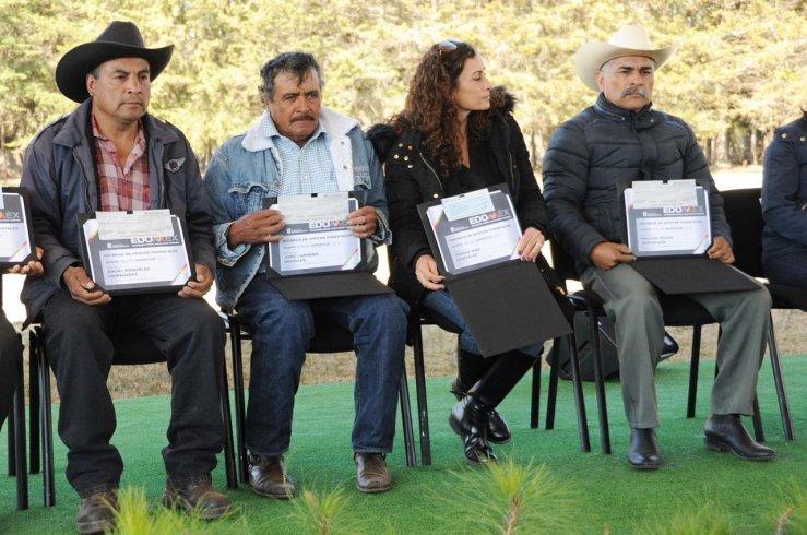 En esta gira de trabajo el mandatario mexiquense entregó apoyos de los programas Pago por servicios ambientales hidrológicos, Plantaciones forestales comerciales, Servicio ambiental de captura de carbono, Reforestación y restauración integral de microcuencas, a ejidatarios de diferentes regiones de la entidad como Almoloya de Juárez, Acambay, Aculco, Almoloya de Alquisiras, Amanalco, Atlacimulco, Chapa de Mota y Donato Guerra, entre otros.