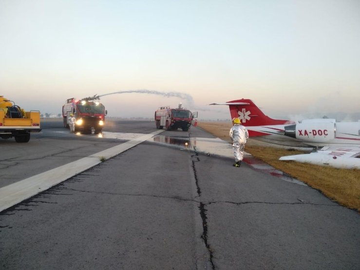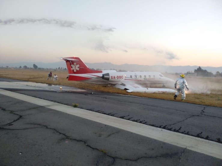 La ambulancia aérea, en la que viajaban siete pasajeros y dos tripulantes, volaba de Toluca al Aeropuerto Internacional del Bajío, en Guanajuato, cuando solicitaron su regreso por emergencia y al momento del aterrizaje sufrió excursión de pista.
