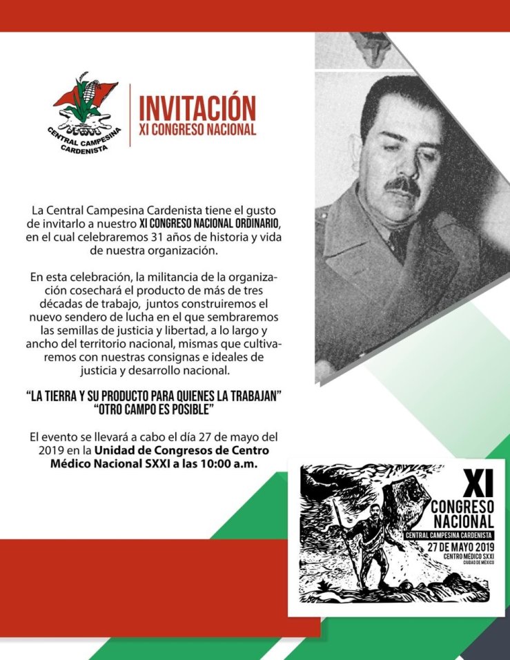 La Central Campecina Cardenista invita a su congreso nacional