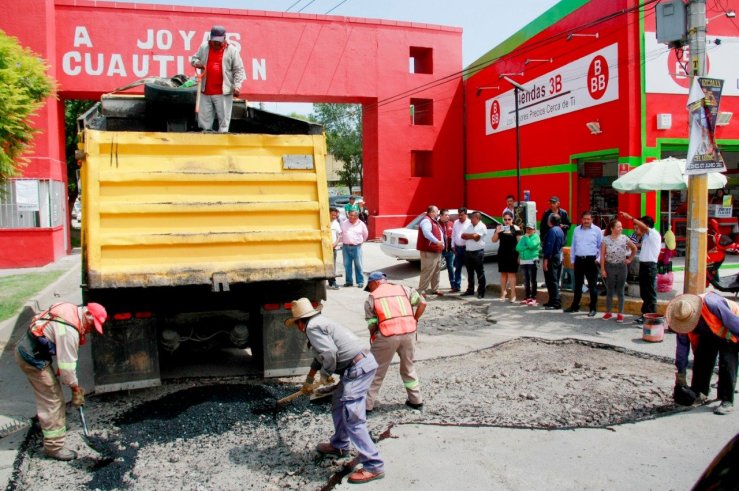 Desde temprana hora una cuadrilla de trabajadores de la Dirección de Servicios Urbanos municipales, iniciaron con el retiro de basura y piedras, riego de emulsión y aplicación de asfalto en el acceso principal del conjunto urbano y una sección del Boulevard Joyas sur, acciones que se han programado de acuerdo a la disponibilidad de la mezcla.