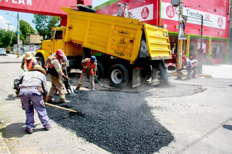 En el conjunto urbano Joyas de Cuautitlán, iniciaron los trabajos de bacheo con el apoyo de transportistas.