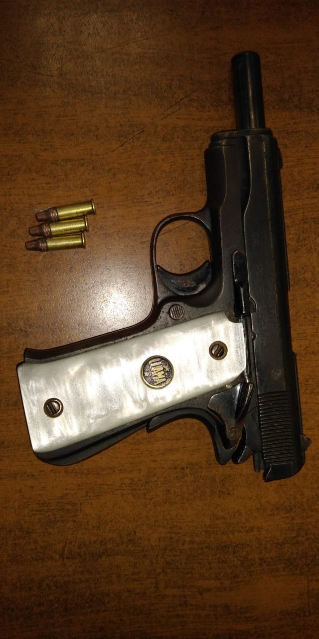 Al revisar la camioneta se encontró en su interior una pistola calibre 22, y al exterior del vehículo varios cartuchos percutidos, por lo que se detuvo a los dos sujetos por portación de arma de fuego, quedando a disposición de la Fiscalía General de Justicia del Estado de México con sede en Texcoco, para determinar su situación legal.