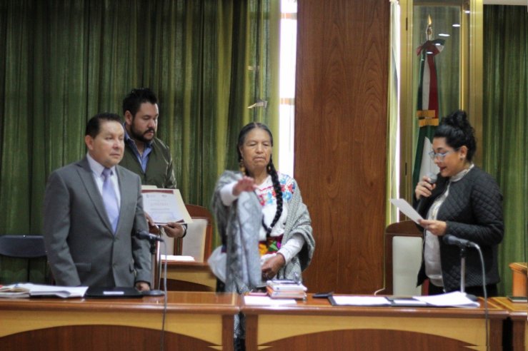 Texcoco, Mex.- Ante el pleno del cabildo de Texcoco, se tomó protesta a Eleuteria Espinoza Méndez, como representante indígena, luego de que el pasado 11 de abril del 2019, resultara electa ante el cuerpo edilicio.