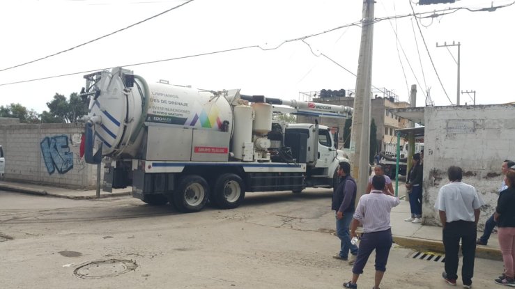 En el lugar, 15 elementos de Grupo Tláloc trabajan con un equipo especializado, uno de bombeo y un camión de presión-succión para bajar los tirantes de 15 centímetros que afectan alrededor de 85 vivienda a nivel de patios y cisternas, en las calles Leona Vicario y 16 de Septiembre, de la colonia San Pedro Atzompa.