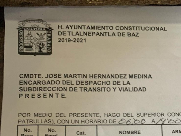 Trasladándolos al Centro de Justicia de Torre-Tlalne, amenazándonos que nos iban a correr porque su hermano era el Subdirector de Tránsito Municipal de Tlalnepantla José Martín Hernández Medina de –clave- Zeus.