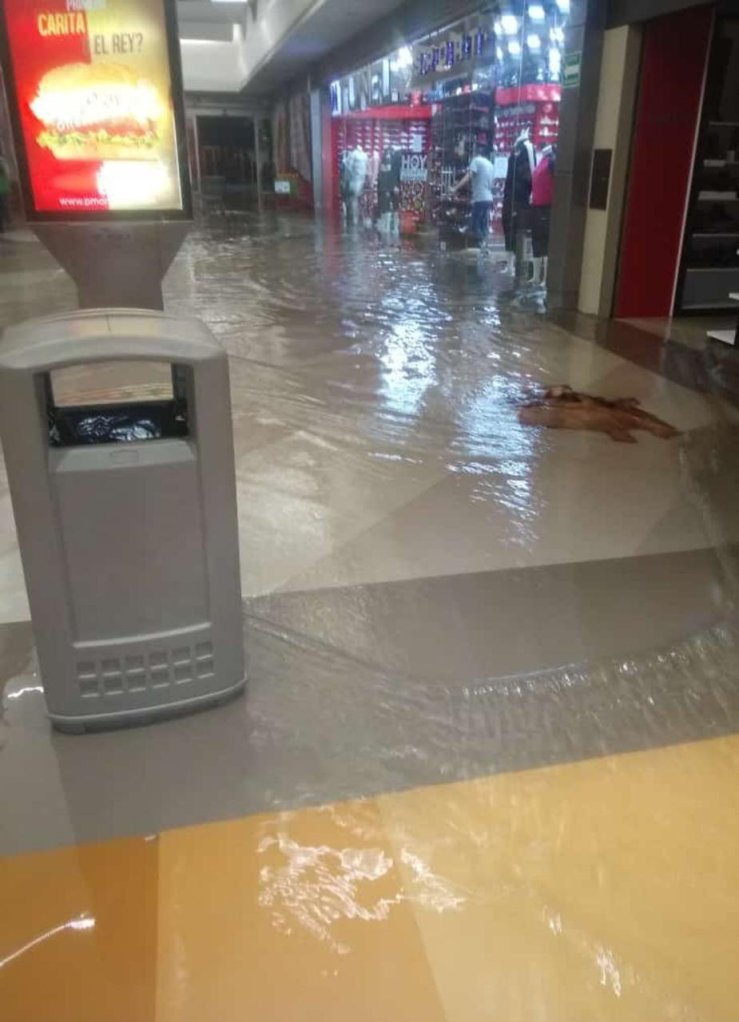 El centro comercial Plaza Aragón sufrió afectaciones ya que el agua ingreso en algunos locales.