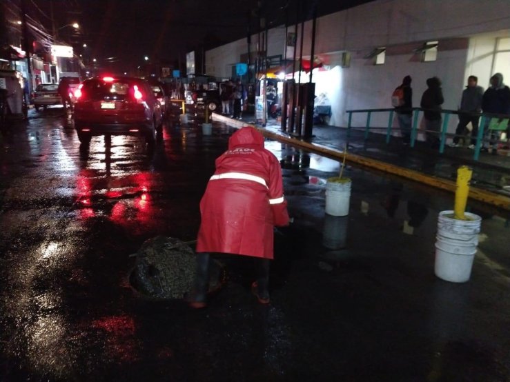 Asimismo, elementos del Grupo Tláloc, pertenecientes a la CAEM, atienden los encharcamientos de las colonias afectadas.