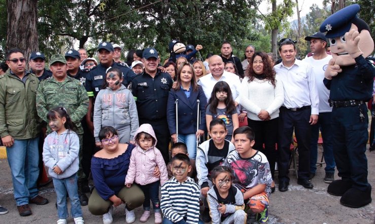 Elementos de la Secretaria de Seguridad del Estado de México, realizaron cortes de cabello, reparación de aparatos electrónicos; instalaron el circuito vial ‘Juguemos a Ser Tránsito’ y un módulo informativo del ‘Programa Vigilante Voluntario’.