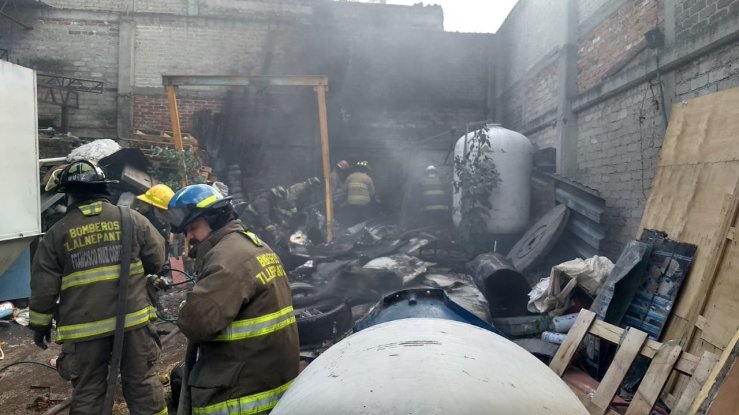 Tlalnepantla, Méx.- Elementos de Protección Civil y Bomberos de Tlalnepantla atendieron de manera oportuna un incendio que se registró en un predio donde se almacenaba y vendía chatarra, sin que se reporten lesionados.