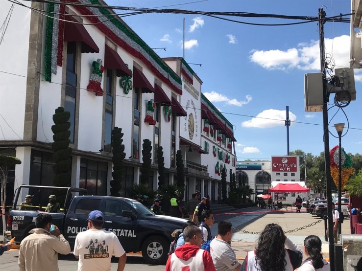 En estos momentos se encuentran personal antibombas de la Secretaría de Seguridad del estado de México, revisando el inmueble, así mismo seguridad pública municipal, Sedena, policía federal resguardan el inmueble.