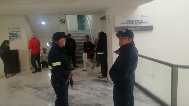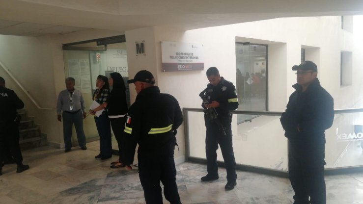 La titular, Hilda Sosa Carbajal de relaciones exteriores informa que ellos no hicieron ningún reporte así mismo se lleva acabo el Protocolo de Seguridad se desaloja el edificio.