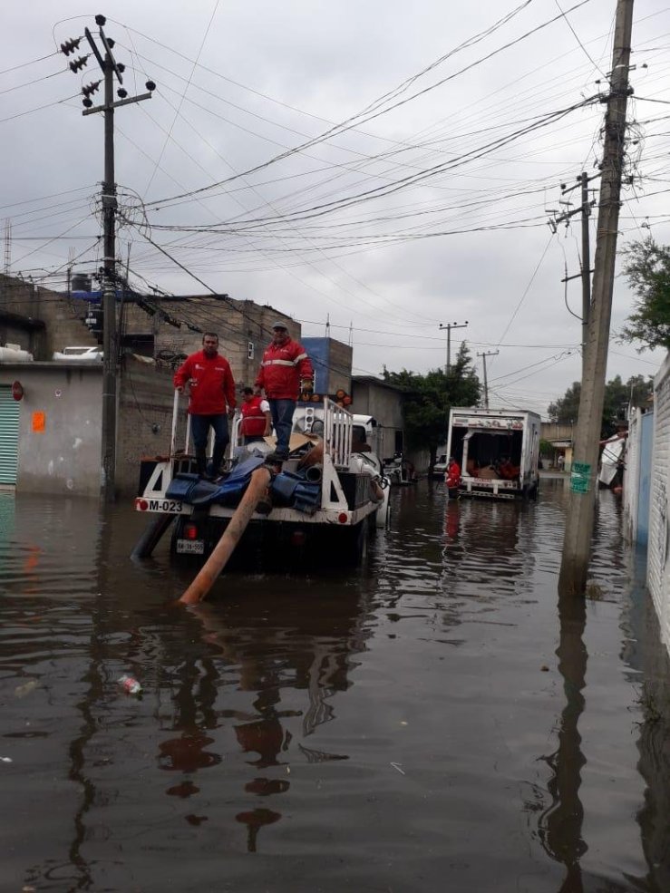 Trabajan en el sondeo del drenaje municipal y bombeando el agua de la calle.Cuautitlán, Méx.- La Comisión del Agua del Estado de México (CAEM) informa que apoya a las autoridades municipales de Cuautitlán y Cuautitlán Izcalli, en el monitoreo y atención de contingencias causadas por la lluvia que cayó la noche de este miércoles en el Valle de México.La Comisión trasladó a elementos del Grupo Tláloc a la colonia Villas de Cuautitlán para coadyuvar con las autoridades de Cuautitlán, en la atención de 44 casas afectadas por la lluvia, mientras que, en el Fraccionamiento Santa Helena, se detectaron 22 vivendas, de acuerdo con un reporte preliminar.Son 25 trabajadores de la CAEM quienes permanecen en el área realizando trabajos de sondeo en la red del drenaje estatal, con seis camiones de presión succión y tres equipos especializados de bombeo.Además, en las colonias La Palma y San Blas bombean el agua de la calle, sin que se observen afectaciones en las viviendas.El personal se encuentra atento para auxiliar a los vecinos que soliciten la intervención de las Brigadas de Agua Limpia de la CAEM, para lavar y desinfectar patios y cisternas.En el municipio de Cuautitlán Izcalli, en la zona de la presa El Ángulo, la CAEM mantiene una cuadrilla de 14 personas, seis equipos de bombeo y dos hidroneumáticos, luego de que a las 20:45 horas de ayer la presa estabilizó su nivel.De igual forma, se realizó un bombeo estratégico para tener un desfogue controlado en la calle 12 de Septiembre, de la Unidad Habitacional Niños Héroes.