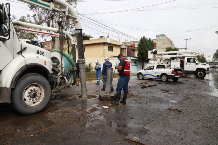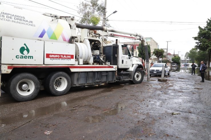 La CAEM apoyó con 5 equipos de succión (vactor) con el objetivo de disminuir los niveles de agua en calles, avenidas y fraccionamientos desde la noche de este miércoles