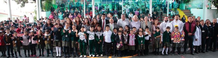 Juan Pablo Martínez, Director de la Escuela Primaria Miguel Hidalgo; Félix Raúl Téllez Gómez, Coordinador de Tlalnepantla Oriente; César Hernández Morales, Coordinador Normativo de Medicina Preventiva del Instituto de Salud del Estado de México (ISEM); Patricia Moran, administradora de la Jurisdicción Sanitaria, así como integrantes del Cuerpo Edilicio.