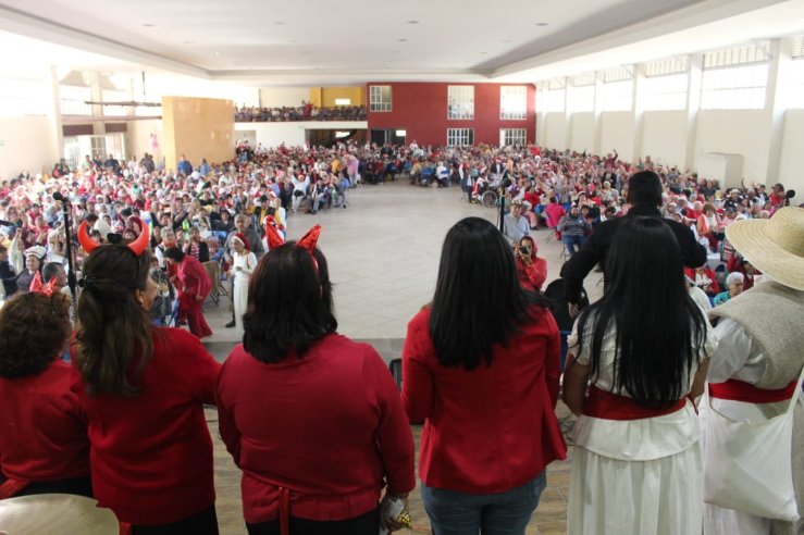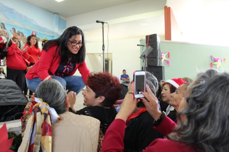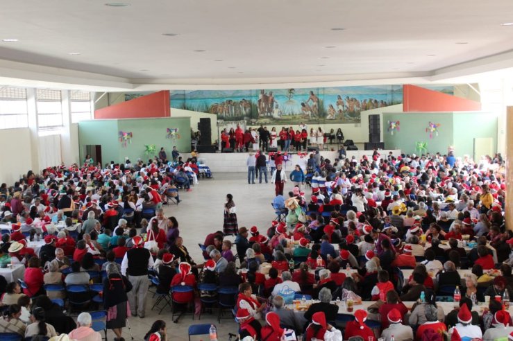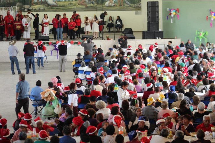Texcoco, Méx.- Adultos mayores de las 56 comunidades de Texcoco y la cabecera municipal, sostuvieron una reunión como parte de los festejos navideños, con la Presidente Municipal Sandra Luz Falcón Venegas y directivos del Sistema Municipal para el Desarrollo Integral de la Familia (DIF) Texcoco en el auditorio del pueblo de Tocuila.