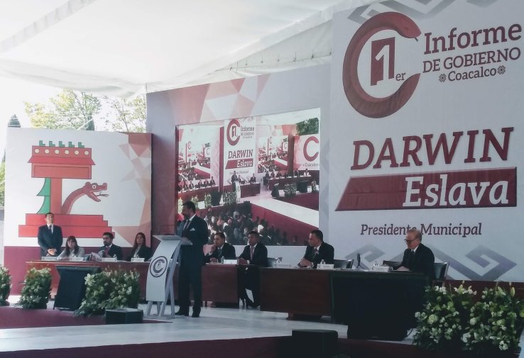 Coacalco, Méx.- El Alcalde, Darwin Eslava Gamiño, al rendir al pueblo coacalquense su Primer Informe de Gobierno destacó que hoy Coacalco es un municipio limpio y con servicios públicos de calidad, más de 400 obras realizadas en comunidades del municipio avalan el trabajo de la actual administración.