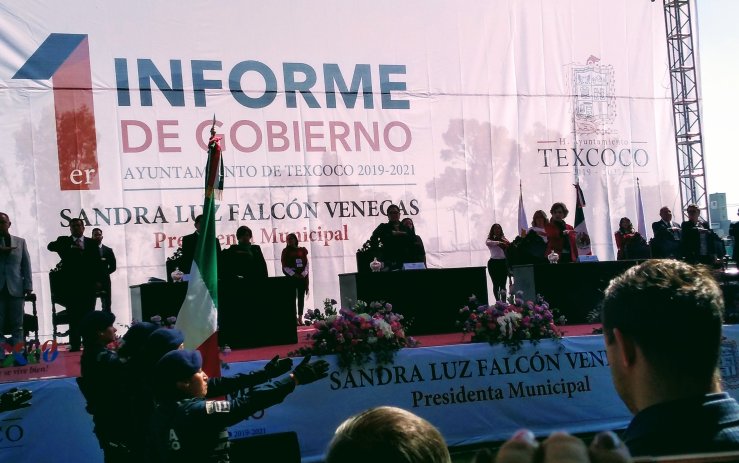 Texcoco, Méx.- Ante representantes populares de los distintos partidos políticos que integran el Cabildo municipal de Texcoco, la Presidenta Municipal, Sandra Luz Falcón Venegas dió cuenta del estado que guarda la hacienda municipal al pueblo texcocano, mediante su Primer Informe de Gobierno.