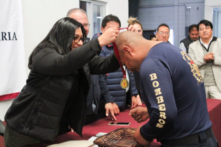 Sandra Luz Falcón, hizo entrega de reconocimientos y medallas a los elementos del cuerpo de bomberos que participaron en esta competencia, a quienes agradeció por su entrega y dedicación, por seguir demostrando en todos los terrenos la capacidad y calidad de los bomberos de Texcoco.